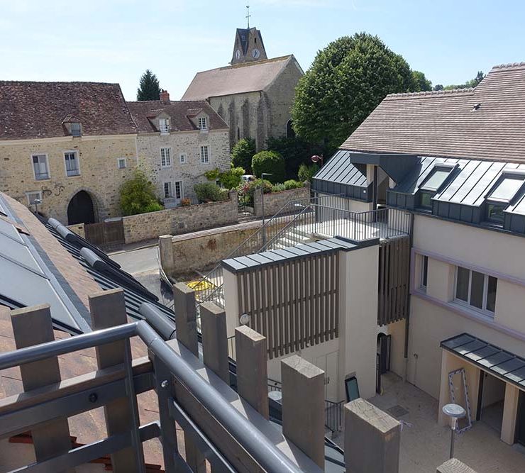 Situé proche d'un bâtiment classé dans le coeur historique du bourg, le programme reprend la volumétrie traditionnelle et ample des bâtiments ruraux qui l'entourent.